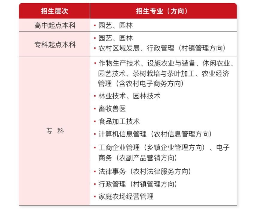 教育部“一村一名大學(xué)生計(jì)劃”專業(yè)(方向)