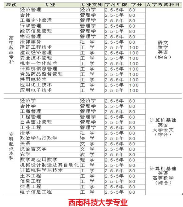 2016年西南科技大學(xué)秋季招生