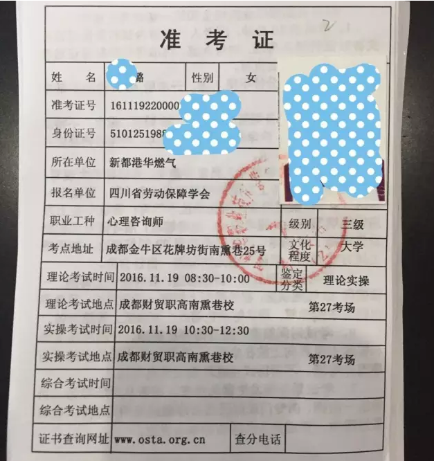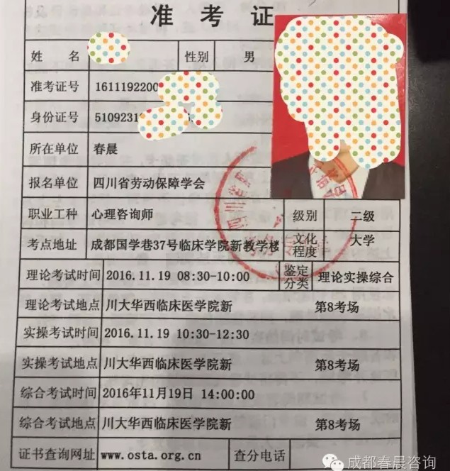2016年下半年成都《心理咨詢師2-3級(jí)》國考準(zhǔn)考證領(lǐng)取通知!