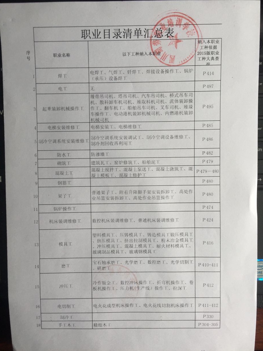 3、起重裝卸機(jī)械操作工、制冷工、制冷空調(diào)系統(tǒng)安裝維修工、防水工、砌筑工、混凝土工、鋼筋工、架子工、手工木工、金屬熱處理工、機(jī)床裝調(diào)維修工、電梯安裝維修工、有害生物防制人員、中央空調(diào)系統(tǒng)運(yùn)行操作員、鍋爐操作工。