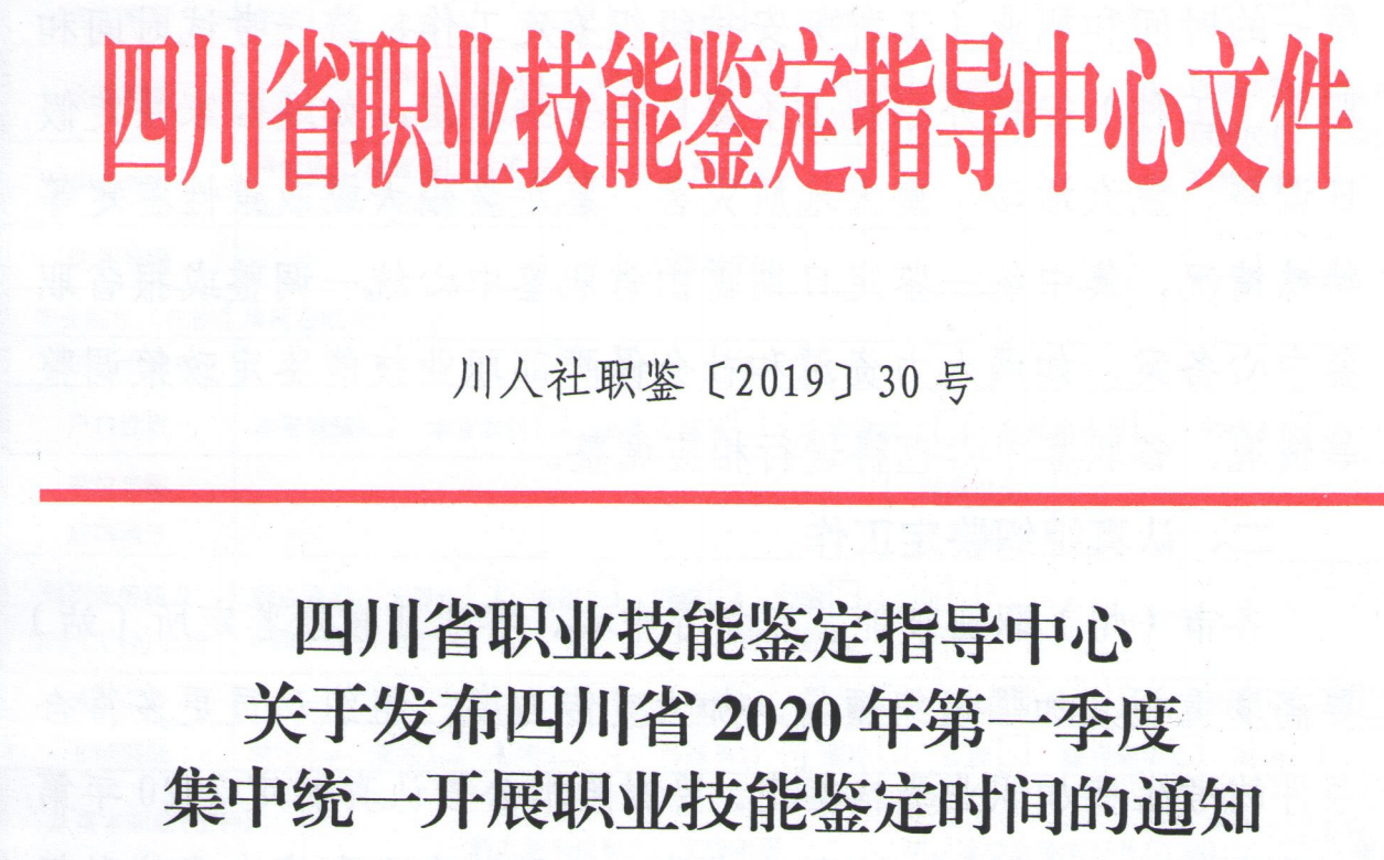 四川省集中統(tǒng)一開展職業(yè)技能鑒定的實施情況和相關(guān)要求,2020年第一季度集中統(tǒng)一開展職業(yè)技能鑒定時間公布。鑒定的職業(yè)范圍、職業(yè)標(biāo)準(zhǔn)按國家最新公布的職業(yè)范圍和職業(yè)標(biāo)準(zhǔn)執(zhí)行。
